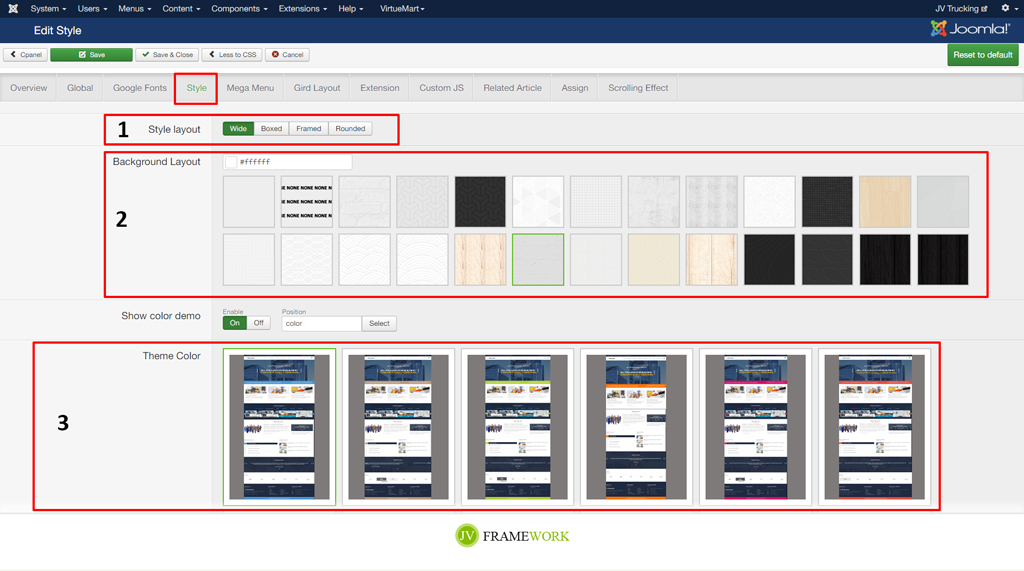 - Go to administrator > extensions > templates [Choose template styles "JV TRUCKING"]