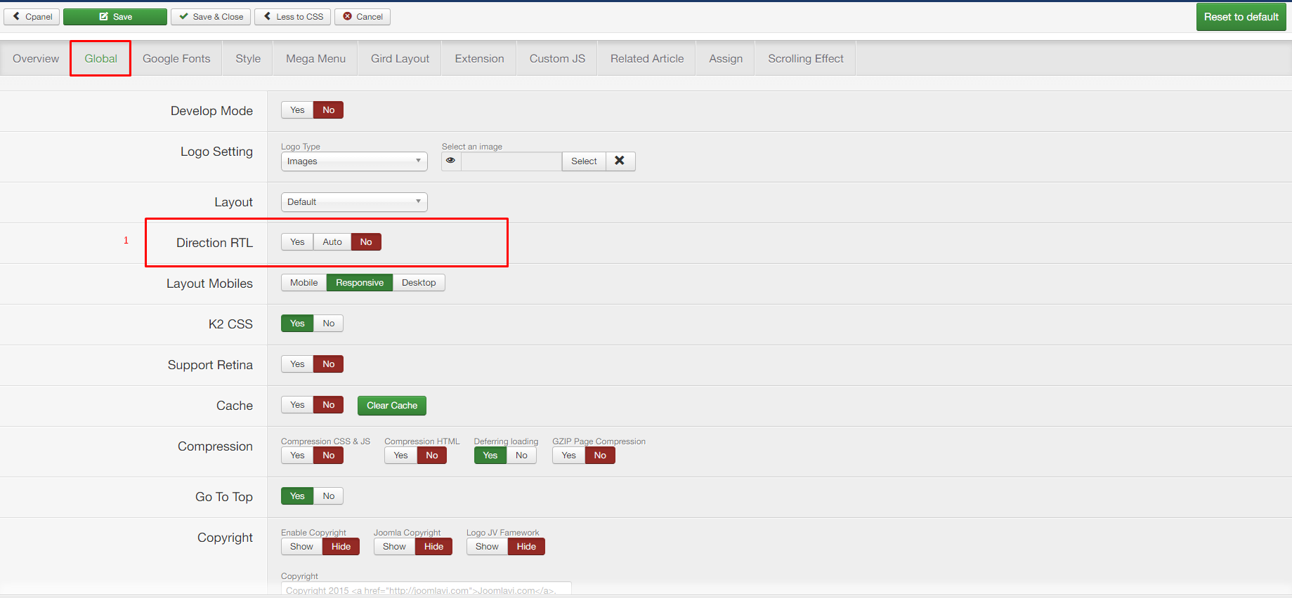 1. Choose Yes or No to active rtl