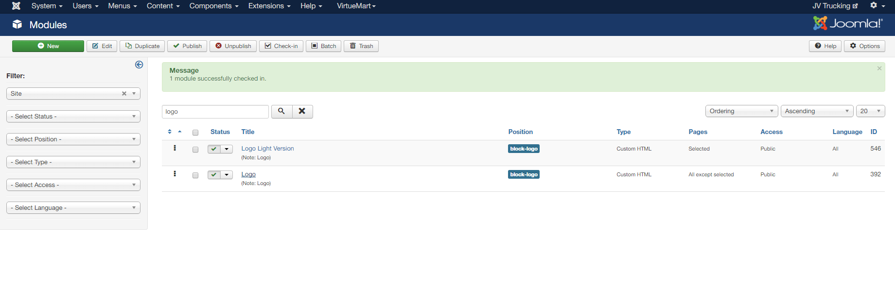 - Go to administrator > extensions > modules [search keyword "logo"]