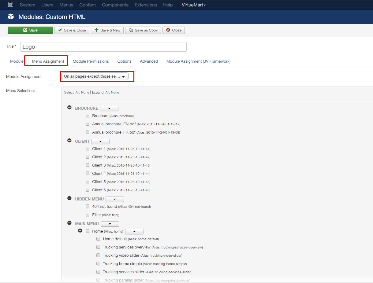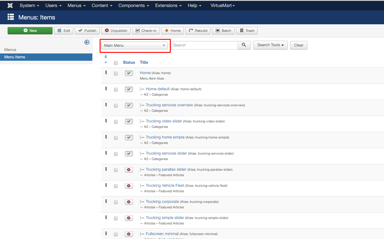 - Go to administrator > menus > Main menu